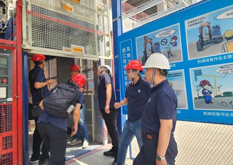 為進(jìn)一步深入落實(shí)《公司安全生產(chǎn)治本攻堅(jiān)三年行動(dòng)實(shí)施方案(2024—2026年)》,夯實(shí)安全生產(chǎn)工作基礎(chǔ), 6月27日,北京建機(jī)院黨委書記、董事長兼總經(jīng)理宮劍飛帶隊(duì)調(diào)研天津環(huán)湖醫(yī)院項(xiàng)目智能施工升降機(jī)使用情況并檢查安全生產(chǎn)工作。北京建機(jī)院黨委委員、副總經(jīng)理、分管安全負(fù)責(zé)人王春琢參加調(diào)研檢查。